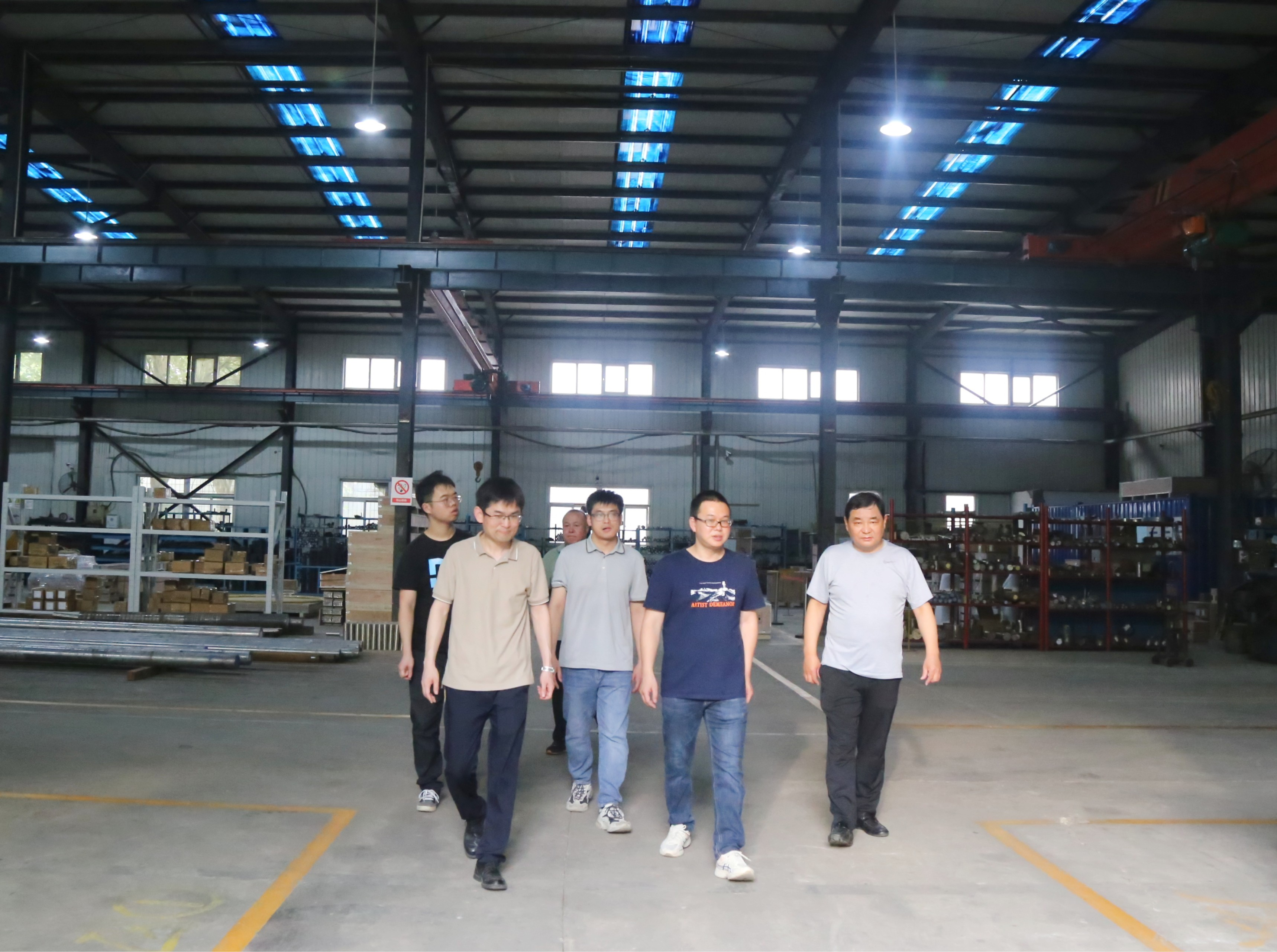 事長劉運智攜營銷團隊王素偉、袁明泉同志陪同考察團參觀了公司“出口訂單產品”生產車間現場并深入交流。